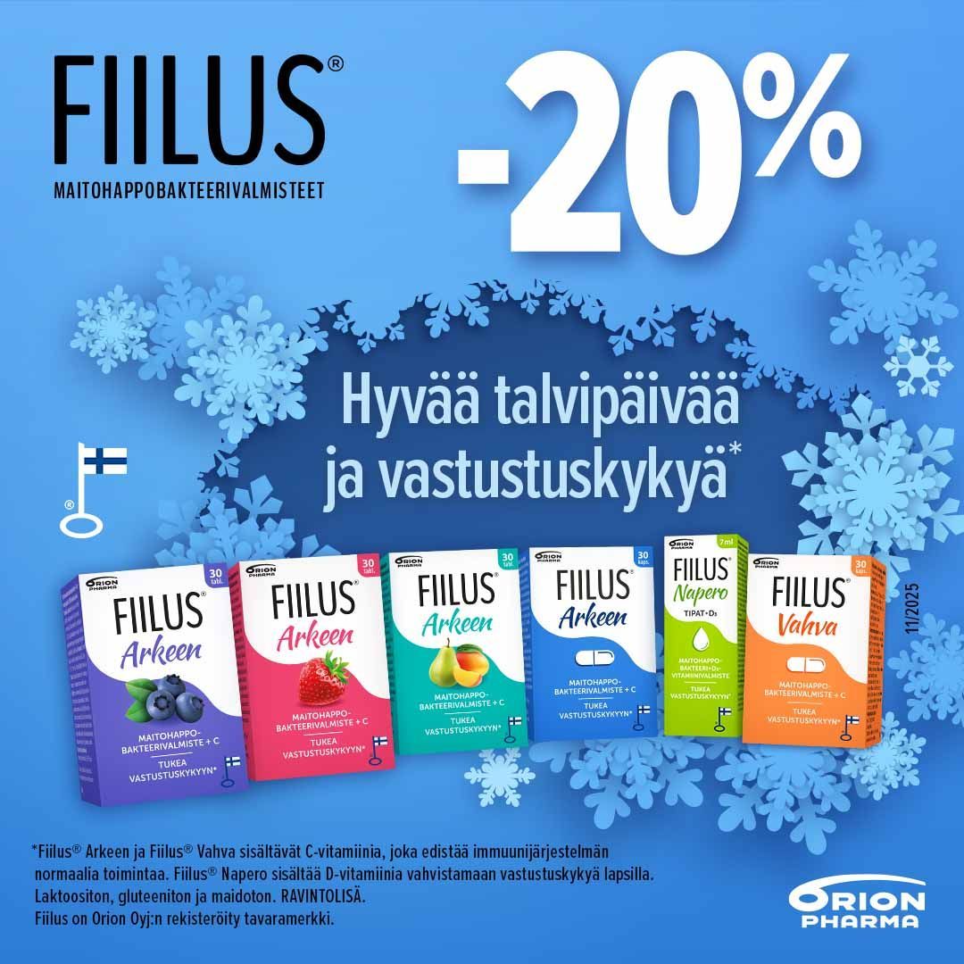 Fiilus maitohappobakteerivalmisteiden sarjasta löytyy tuotteet moneen makuun ja tarpeeseen, joten hae omasi apteekista ja nauti talven iloista.