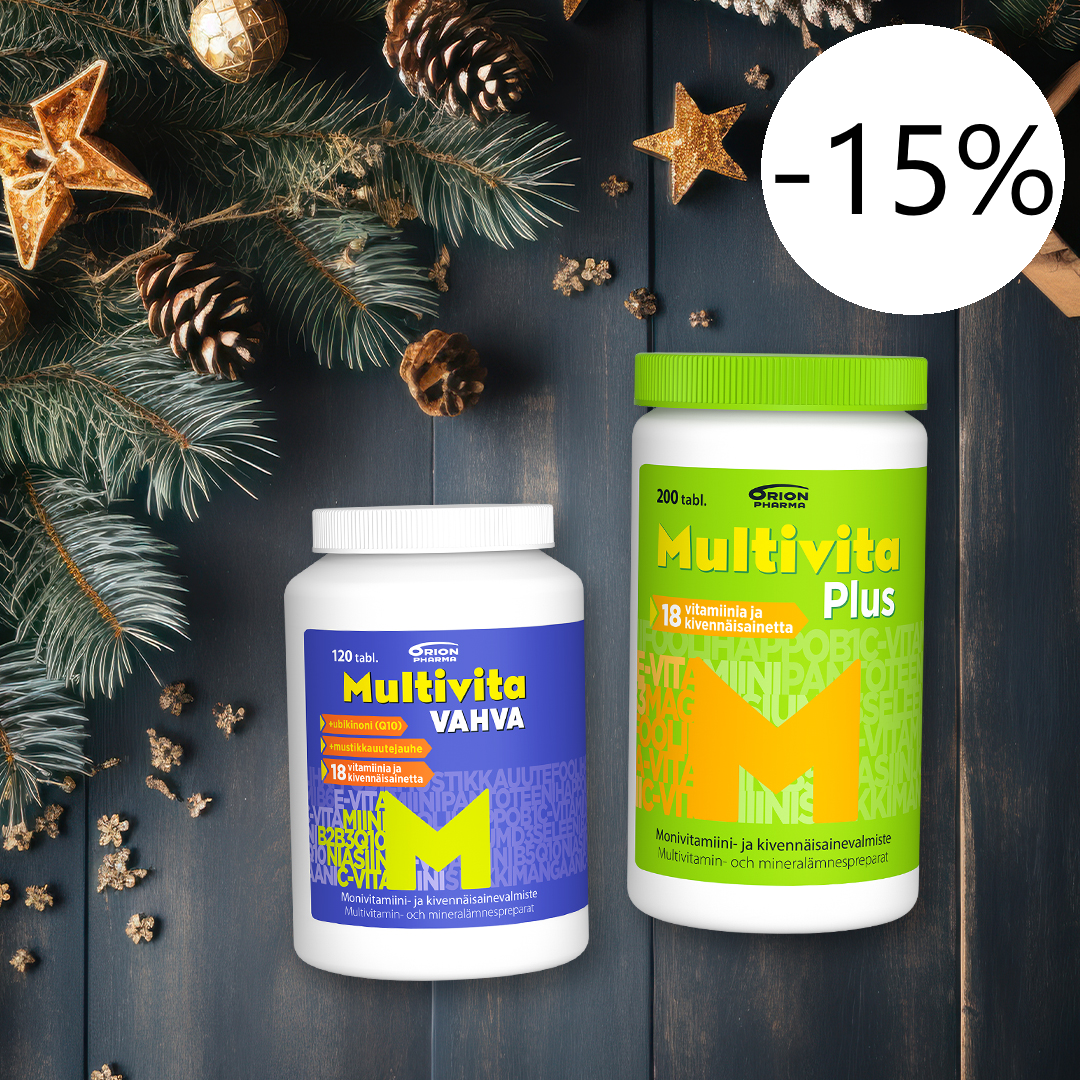 Multivita Plus ja Multivita Vahva sisältävät aimo annoksen päivittäin tarvittavia vitamiineja ja kivennäisaineita.